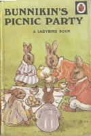 Bunnikin's Picnic Party *The very first title in the original 401 series. First published in 1940. The first edition would have a Dust Jacket. Written in verse. The author of the original story was A J Macgregor who was also the illustrator, with revised verses by W.Perring. The up-dated cover depicts a scene portrayed in the book. The earlier mounted image as seen on the circa 1967 is specific to the cover. | |